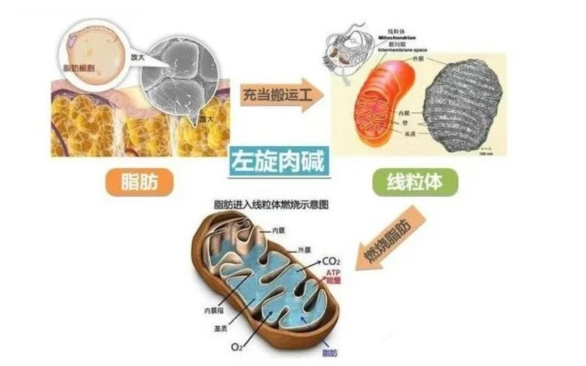 作用机理:左旋肉碱是一种天然存在于人体的氨基酸衍生物,其主要生理作用在于协助将脂肪酸转运至线粒体氧化,以促进脂肪的分解供能。