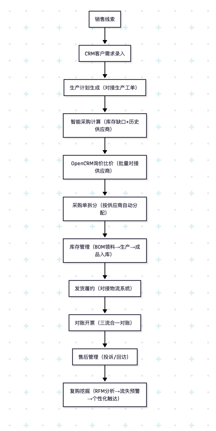 核心逻辑:供应链协同的关键是“数据实时同步+流程可视化”——让销售需求直接驱动采购,让供应商状态直接影响生产。