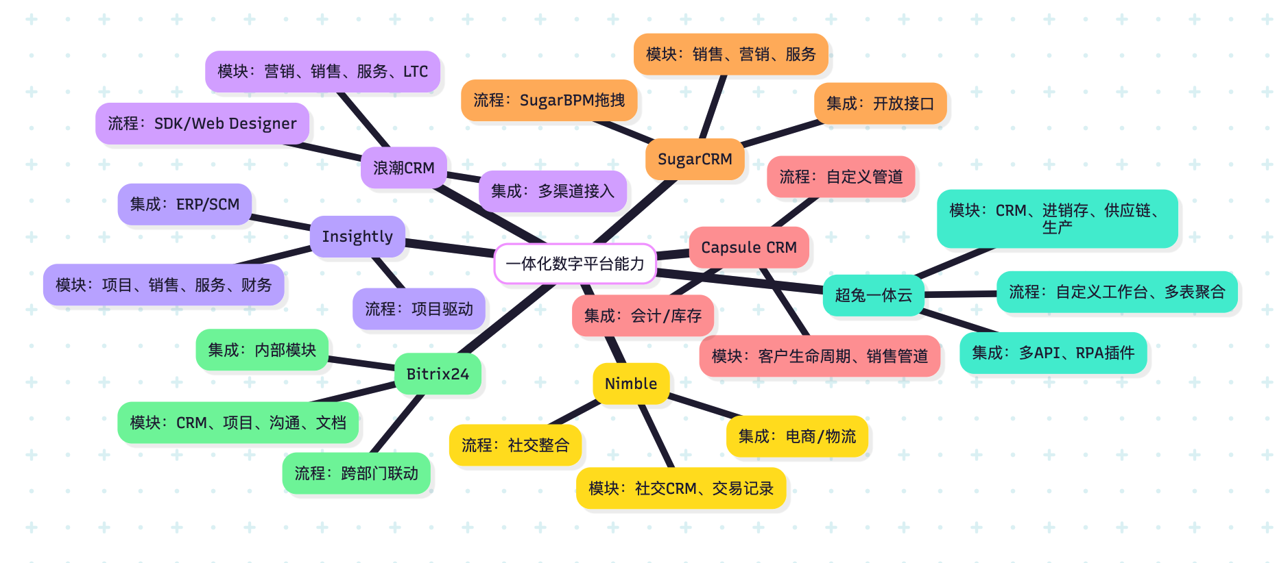 在中小企业数字化转型中,CRM系统的核心价值已从“客户管理工具”升级为“全业务协同平台”——既要打通“销-产-供-服”全流程,又要提升供应链效率,更要激活复购与转介绍的长期增长。本文基于一体化数字平台贯通、供应链协同效率、复购转介绍增长三大核心维度,对超兔一体云、SugarCRM、浪潮CRM、Bitrix24、Insightly、Capsule CRM、Nimble七大品牌展开深度横评,为企业选择适配工具提供参考。