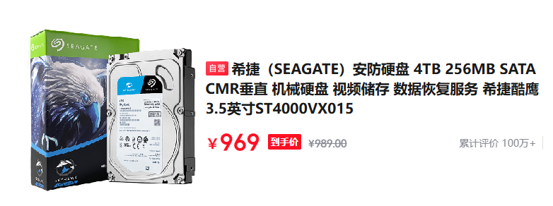 希捷(SEAGATE)安防硬盘 4TB 256MB SATA CMR垂直 机械硬盘 视频储存 数据恢复服务 希捷酷鹰 3.5英寸ST4000VX015item.jd.com/100192652604.html