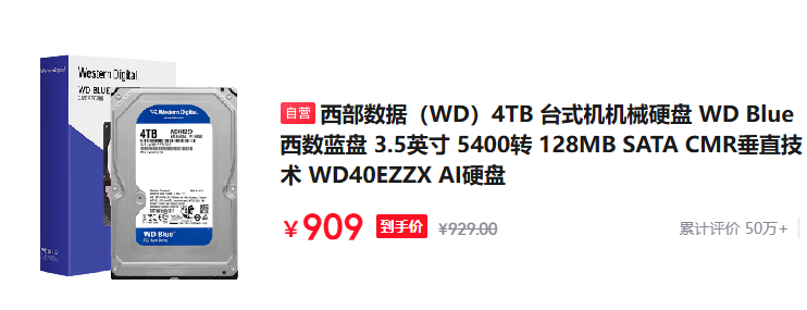 【西部数据WD40EZZX】西部数据(WD)4TB 台式机机械硬盘 WD Blue 西数蓝盘 3.5英寸 5400转 128MB SATA CMR垂直技术 WD40EZZX AI硬盘【行情 报价 价格 评测】-京东item.jd.com/100226063725.html#switch-sku