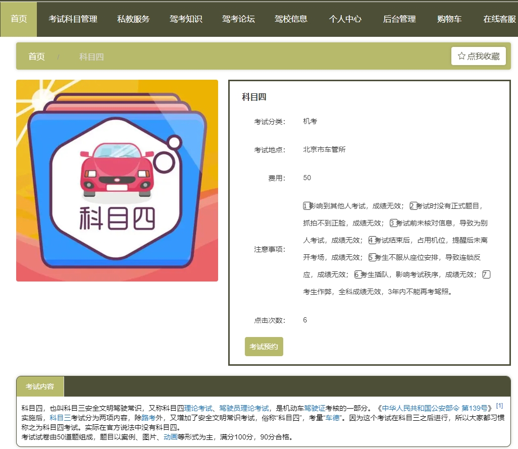 (5)查看产品:用户可以查看系统中的考试科目详细信息。