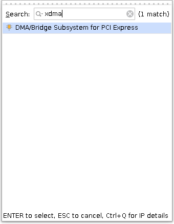 首先,在 Vivado 中创建一个 Block Design,并添加所需的 IP。通过 IP Catalog 搜索 XDMA,并选择如图所示的 XDMA IP 核。