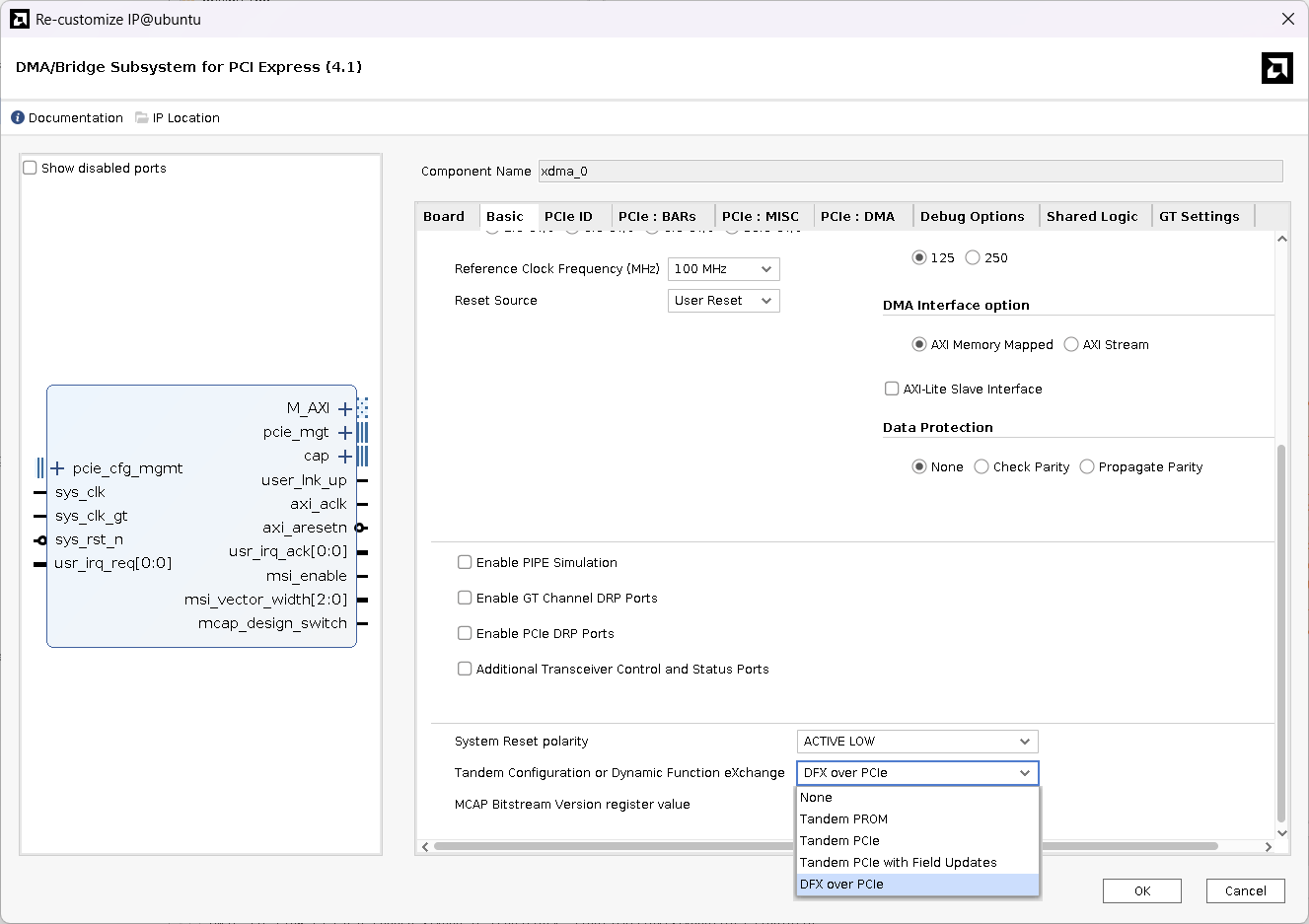 - DFX over PCIe:用于为 DFX 启用 MCAP 链路,而无需启用串联配置。