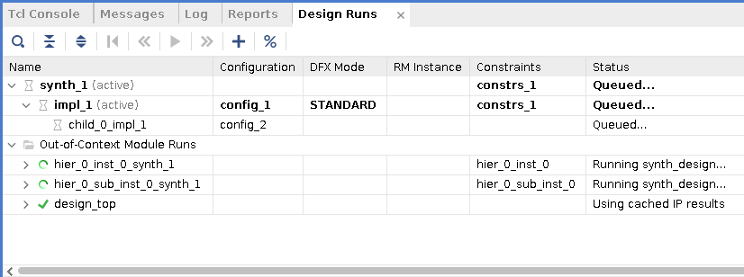 完成 Block Design 的创建后,通过 DFX Wizard 配置 DFX 运行配置。配置完成后的结果如下图所示。