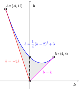 -3k<b< \dfrac{1}{4} (k-2)^2+3