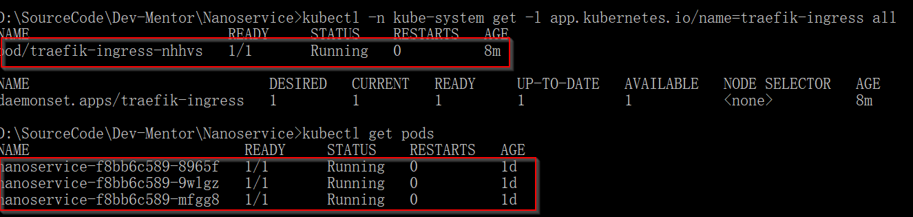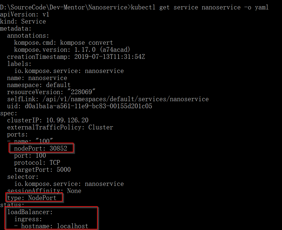 Containers:nanoservice:Container ID:   docker://b5aebb04f8204f31b73e97e0f62b3644e19eff3cc2be1b5e93a6a92b5656811fImage:          nanoservice5000Image ID:       docker://sha256:10f14d2ffa43d8ac6f427dab32487e2eabf739cd46c7dae9faa369a0b5a3b28dPort:           5000/TCPHost Port:      0/TCPState:          RunningStarted:      Thu, 18 Apr 2019 21:59:36 +0000Ready:          TrueRestart Count:  0Environment:    <none>Mounts:/var/run/secrets/kubernetes.io/serviceaccount from default-token-cvzl9 (ro)
