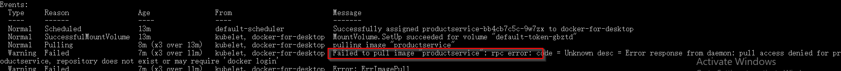 Events:Type    Reason     Age   From                       Message----    ------     ----  ----                       -------Normal  Scheduled  45m   default-scheduler          Successfully assigned default/nanoservice-pod to kubernate-workerNormal  Pulled     45m   kubelet, kubernate-worker  Container image "nanoservice5000" already present on machineNormal  Created    45m   kubelet, kubernate-worker  Created container nanoserviceNormal  Started    45m   kubelet, kubernate-worker  Started container nanoservice