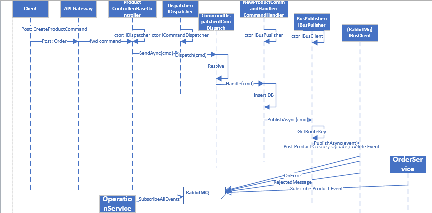 {public class NewProductCommandHandler : ICommandHandler<NewProductCommand>{IBusPublisher _busPublisher;public NewProductCommandHandler(IBusPublisher busPublisher){_busPublisher = busPublisher;} public async Task  HandleAsync(NewProductCommand command, ICorrelationContext context){var enumerator = DataStore<Product>.GetInstance().GetRecords(i=>i.Name == command.Name) ;if (enumerator.Count() == 0 ){DataStore<Product>.GetInstance().AddRecord(new Product(command.Id, command.Name, command.Category, command.Price));//Send product created event bus msgawait _busPublisher.PublishAsync<ProductCreated>( new ProductCreated { Id = command.Id, Name = command.Name }, context);}else{//Send rejected bus message