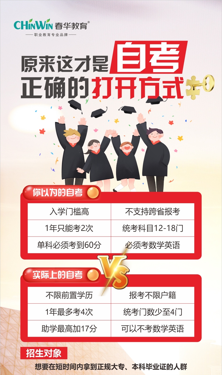 通常包括:选择培训机构与专业(如春华教育的1对1学业规划)→ 报名注册(机构代办)→ 制定学习计划(结合直播+录播课程利用碎片时间学习)→ 阶段性复习(通过春华教育智能平台做真题、查缺补漏)→ 参加考前密训(春华教育核心考点梳理)→ 报名考试(机构代办)→ 参加考试→ 论文写作与答辩→ 毕业申请(机构代办)→ 领取毕业证。