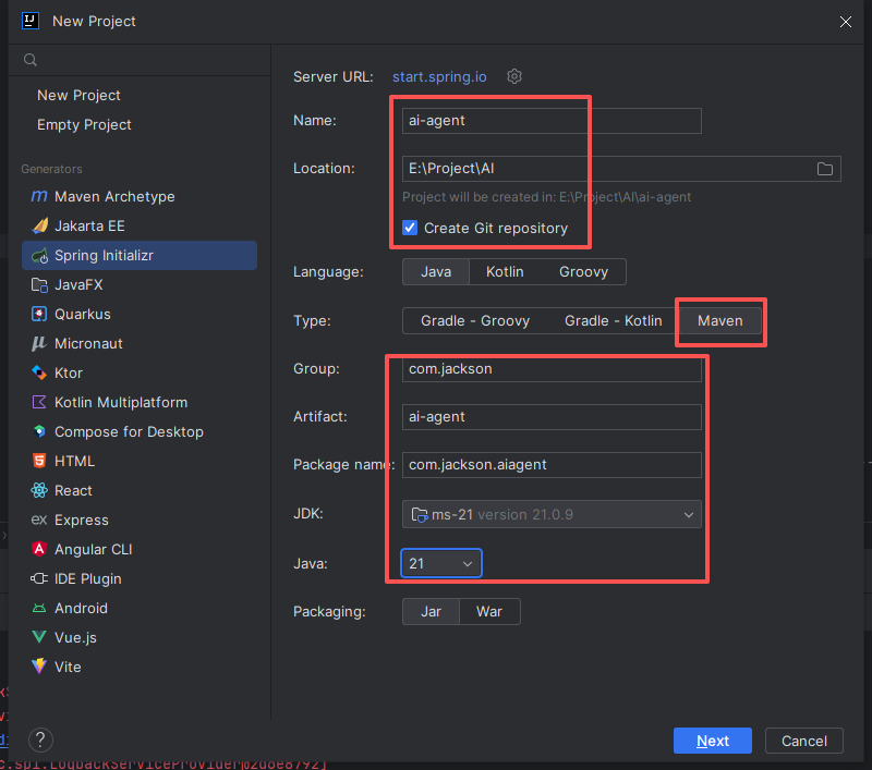 在 com.jackson.aiagent 包下创建 AgentExample.java 文件: