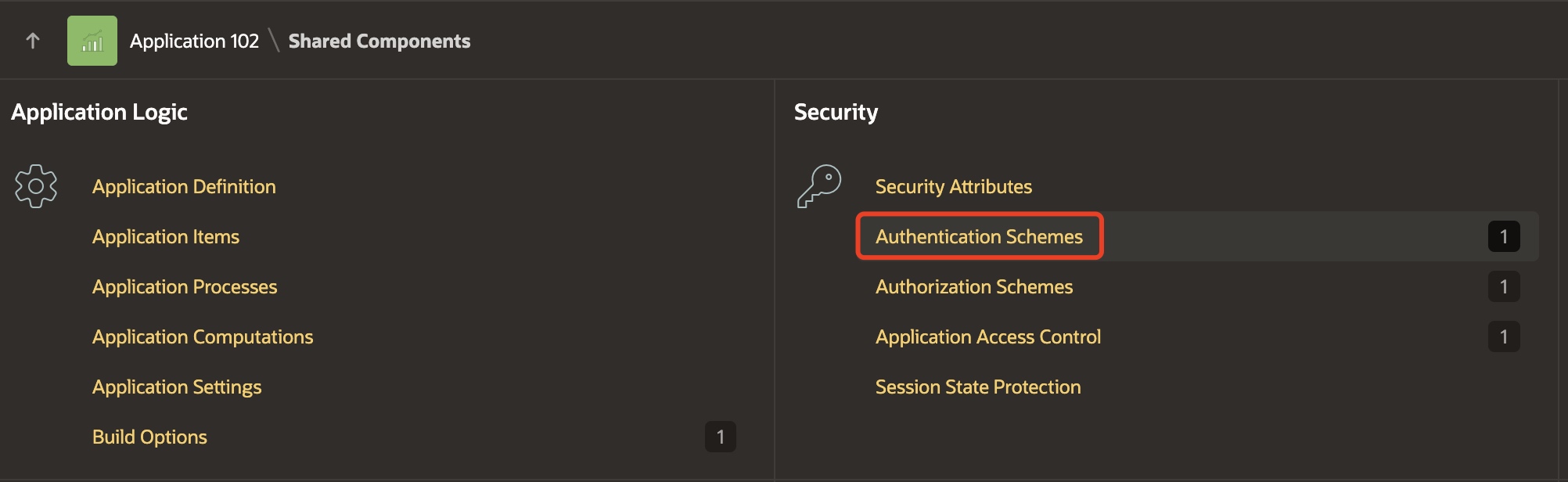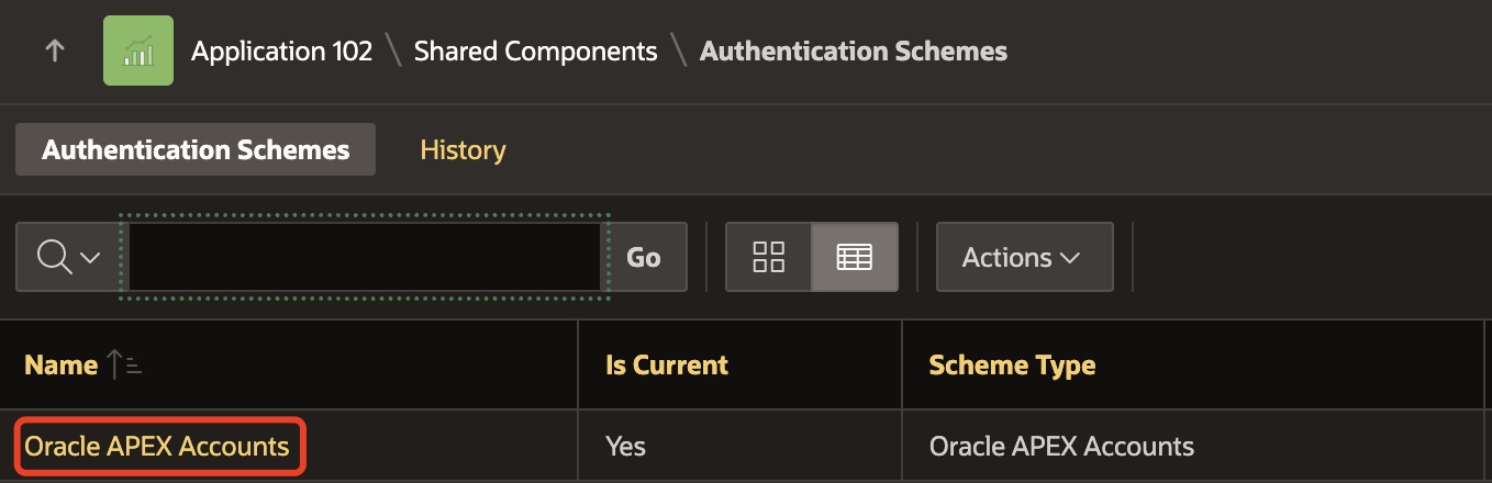 选择自己当前选择的认证方案,这里测试只有默认的 Oracle APEX Accounts