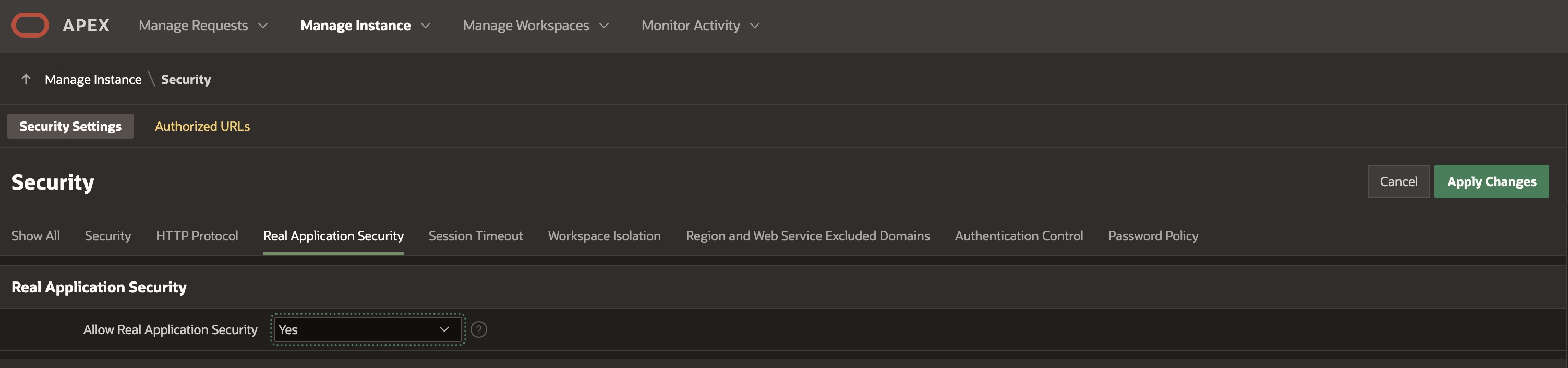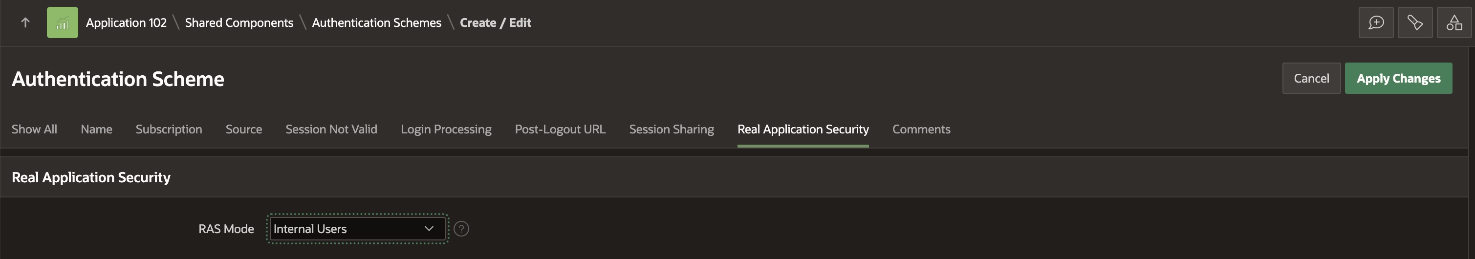 选择 Real Application Security,将 RAS Mode 修改为 Internal Users,最后别忘了 Apply Changes 保存配置: