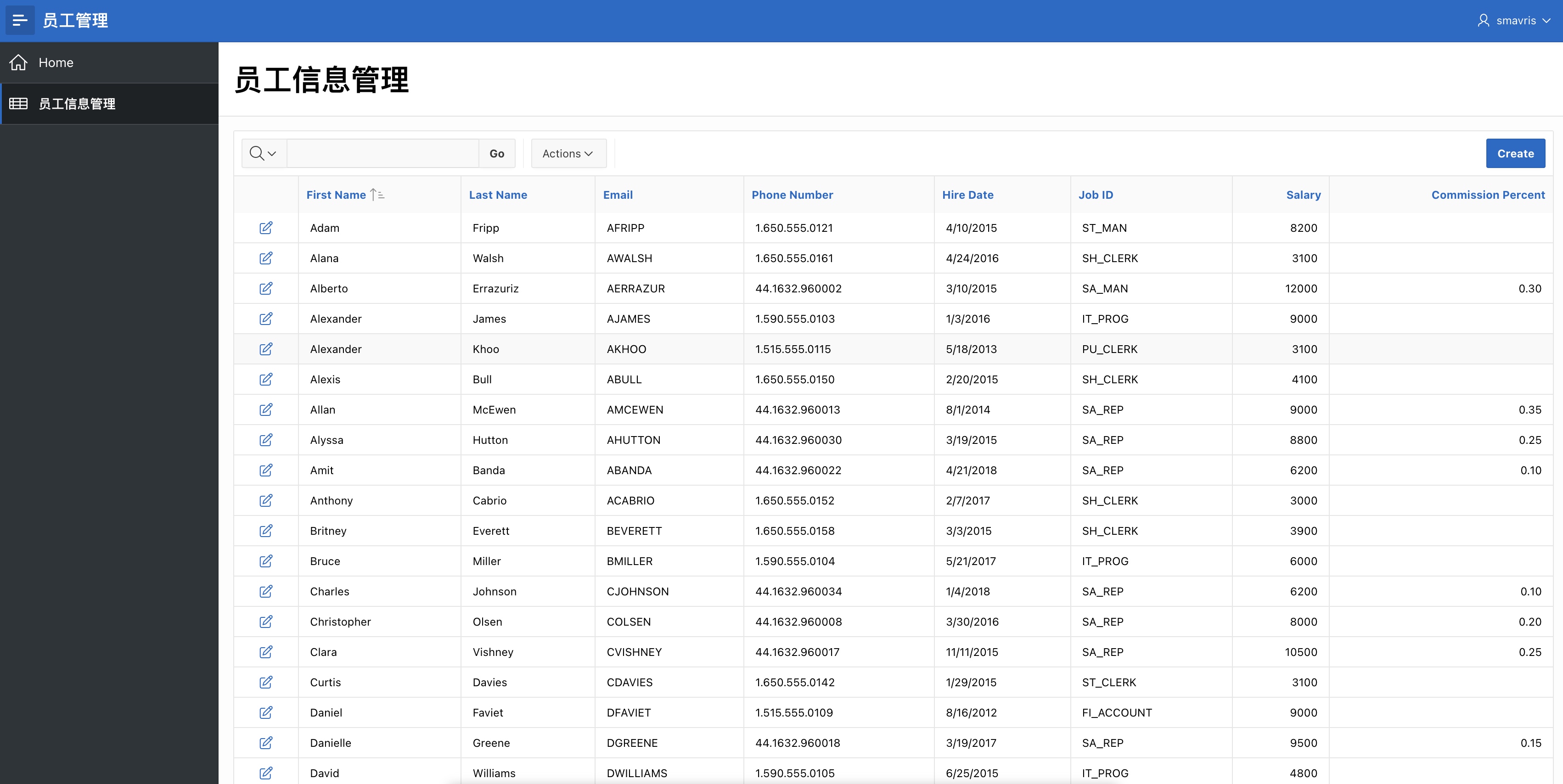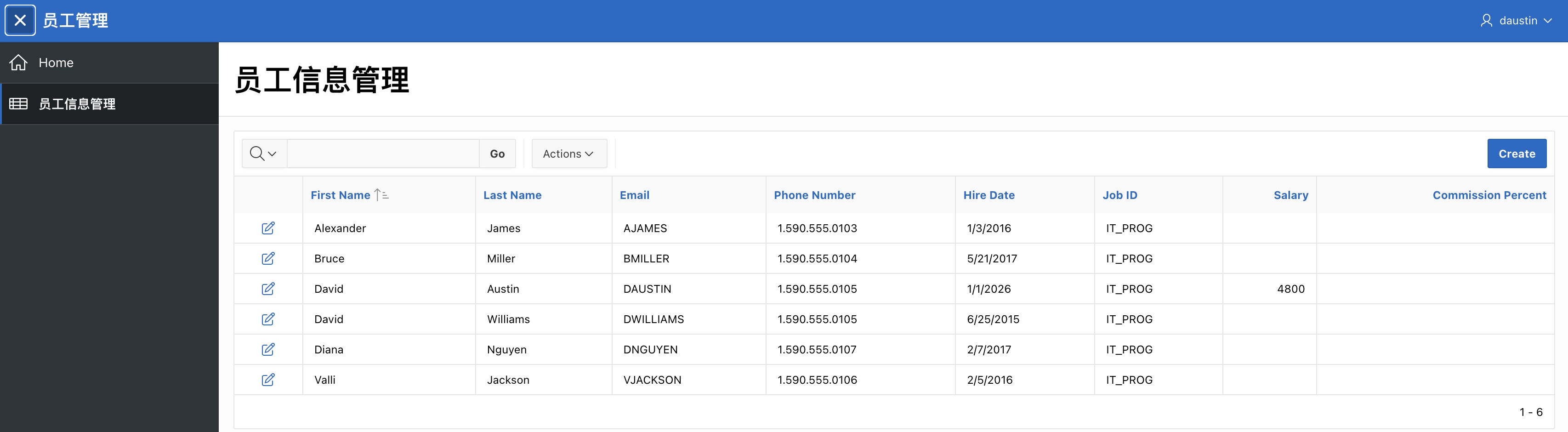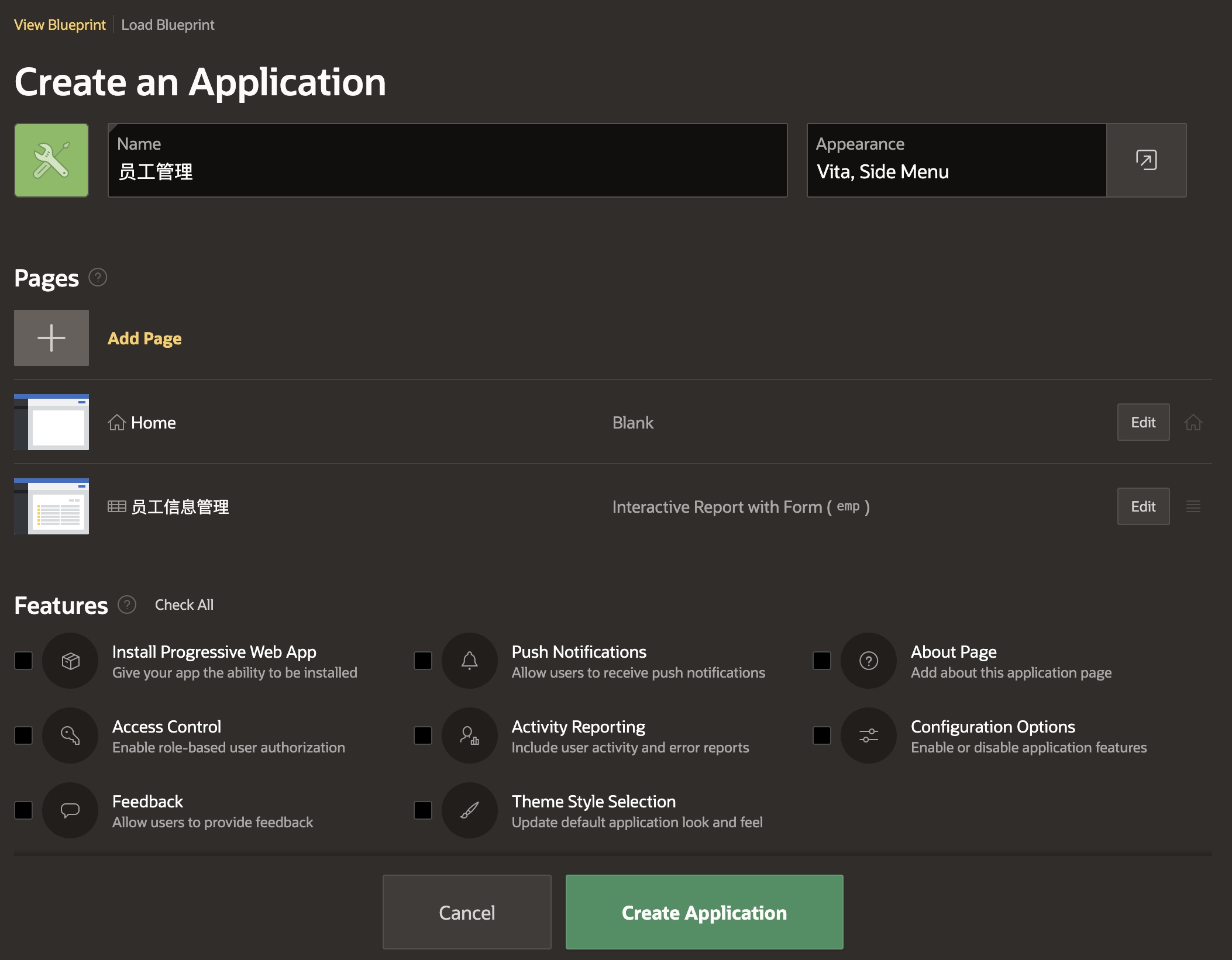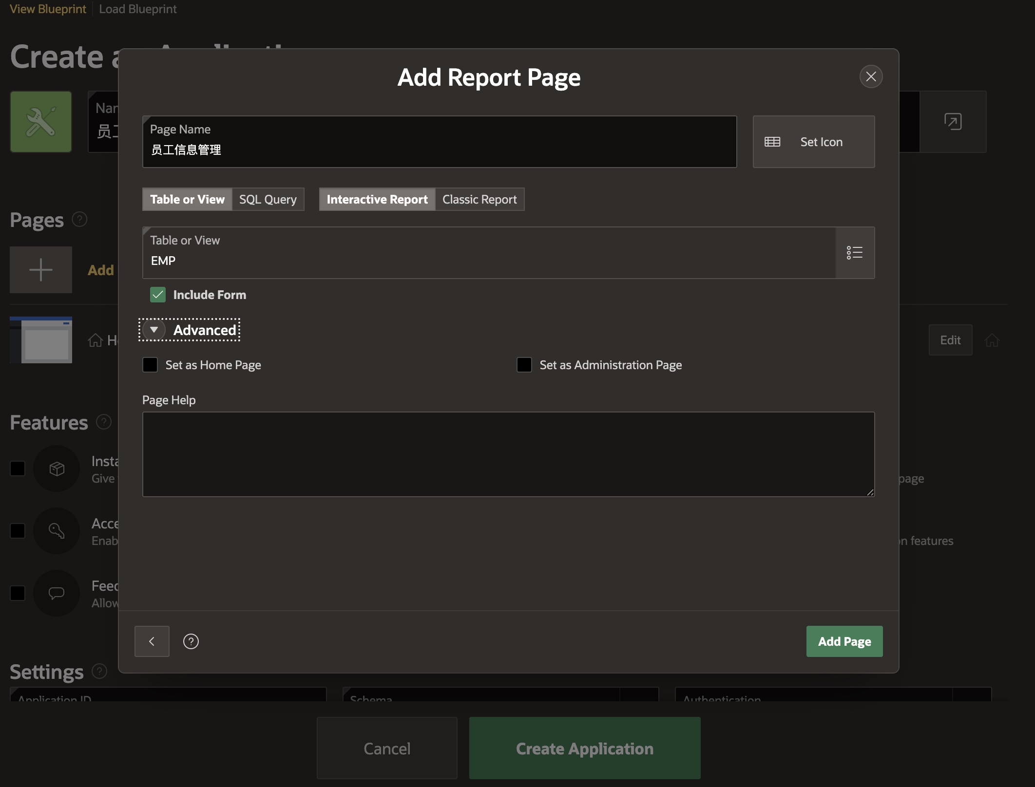 基于EMP这张表,配置好带表单的交互式报表,点击 Create Application 即可: