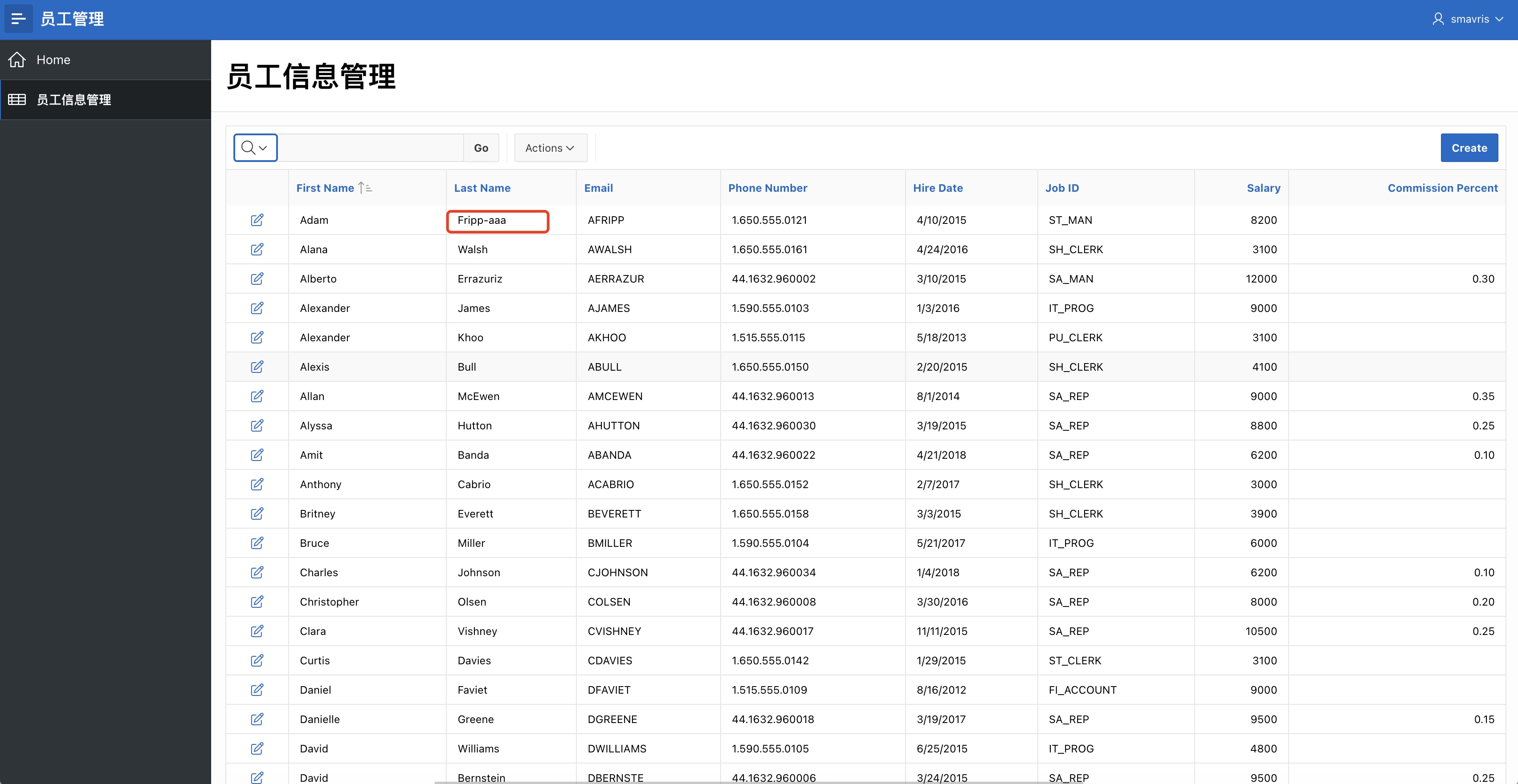 还可以正常修改任意员工的信息,比如修改 121 号员工的Last Name: