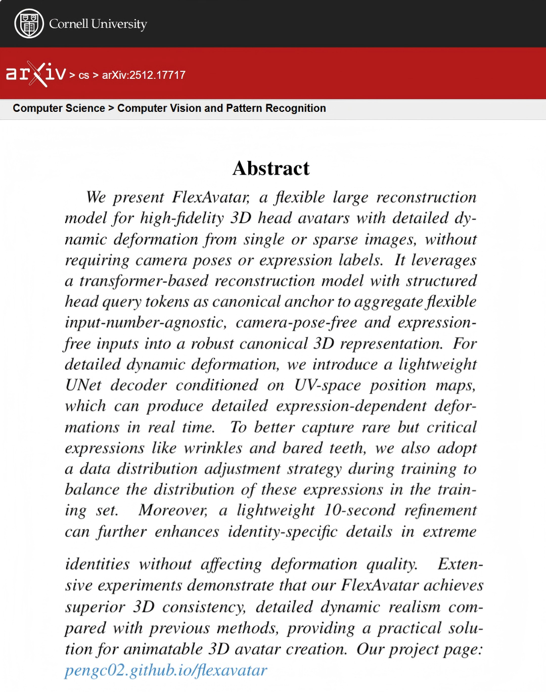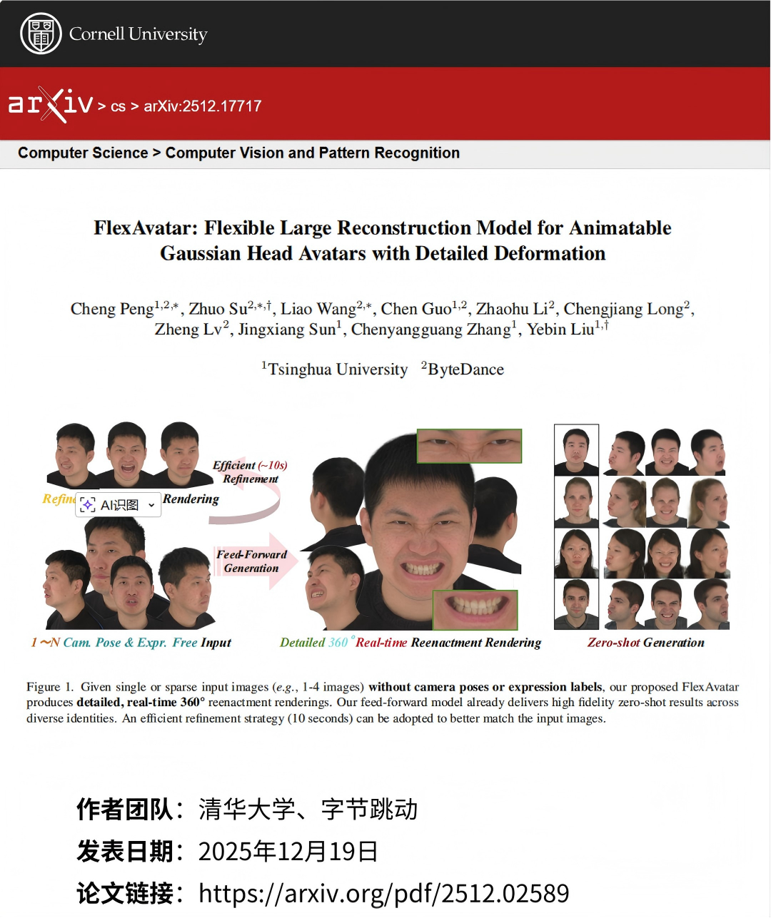 清华联合字节刷新 3D 头像技术!FlexAvatar 实现 “少图输入 + 高保真动态” 双重突破