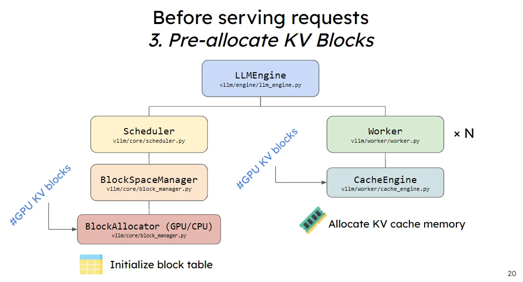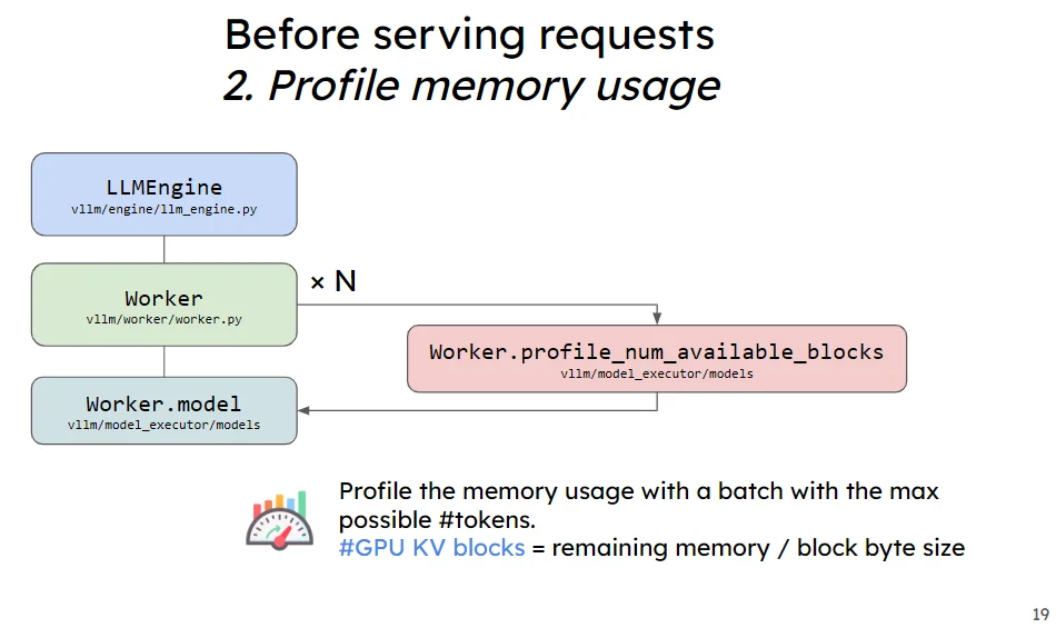 这个给过程的的话首先是去计算预分配的KV Cache大小,而后将预分配的KV Cache加载(一般就是初始化为0的向量)到gpu上
