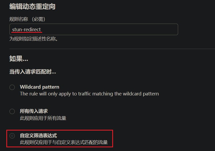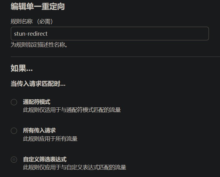规则名称任意填写 这里使用 stun-redirect