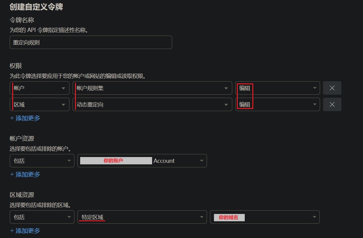 与更新页面规则时不同 要获取并更新重定向规则需要两组权限