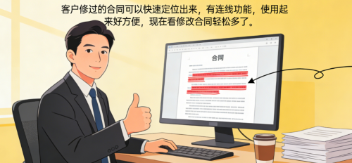 用户实感:销售精英黄先生评价:“客户修过的合同可以快速定位出来,有连线功能,使用起来好方便,现在看修改合同轻松多了。”