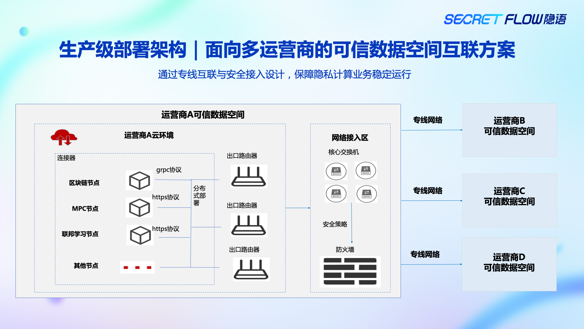 工程上强调“最小暴露面”: 系统仅开放标准协议接口(如gRPC、HTTPS),确保原始数据与计算逻辑始终不出域,同时满足合规要求、运行稳定性与可运维性。