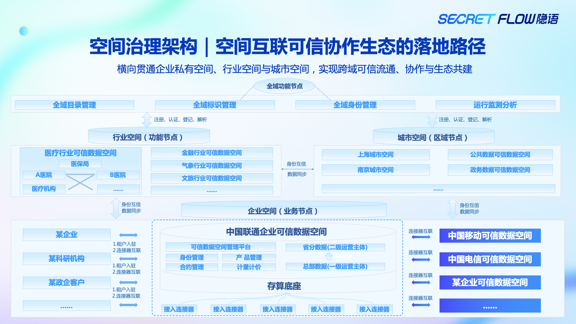 • 通过统一的身份、标识与治理规则,先解决“谁能参与、如何建立信任”的基础问题;