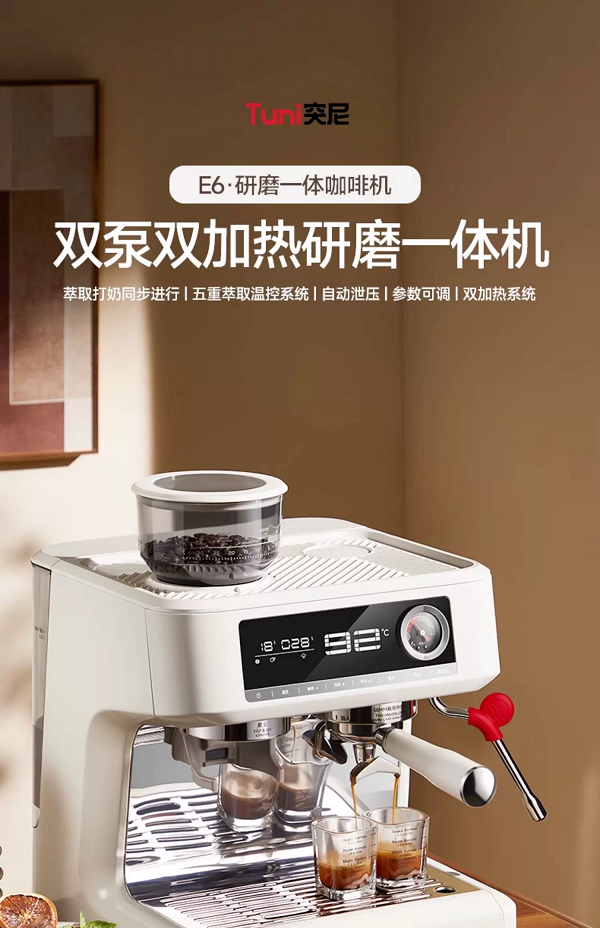 4. 突尼 E6 意式半自动咖啡机 (9.0/10分)