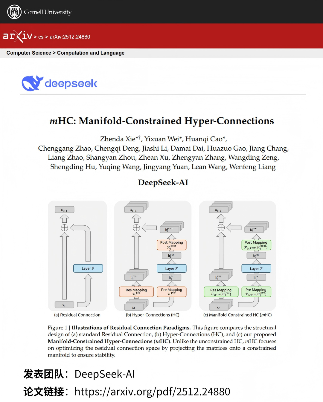 DeepSeek提出mHC,改造何恺明残差连接