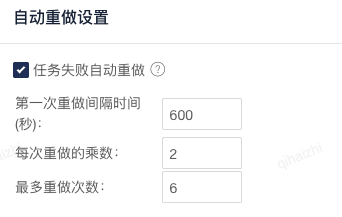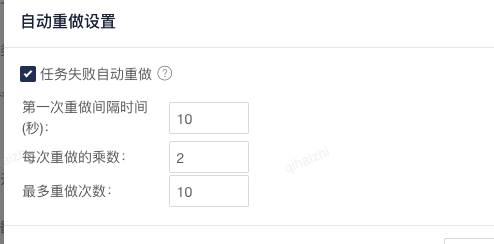 2.最多重做次数是[1,16]间的整数,第一次重试的间隔没有限制,单位是秒。