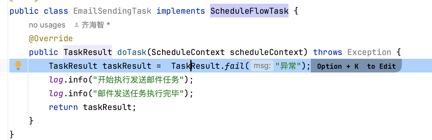1、实现接口:com.wangyin.schedule.client.job.ScheduleFlowTask,并设置任务返回失败: