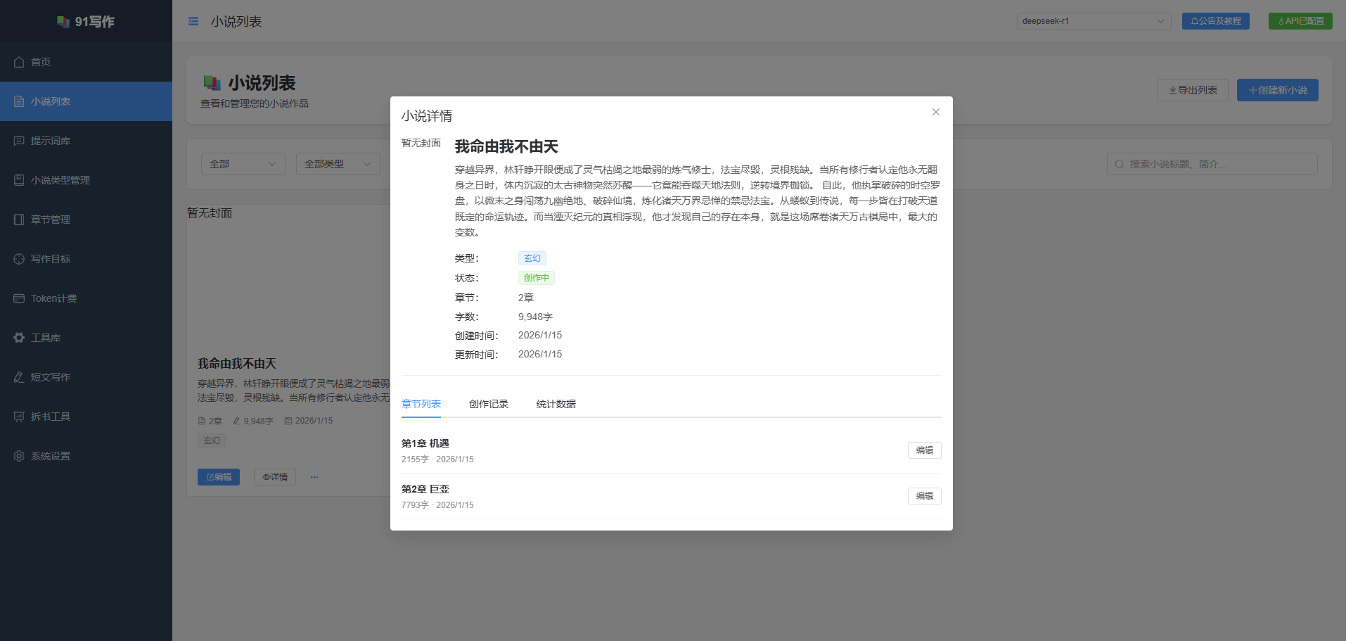 无论是刚起步的写作新人,还是深耕多年的资深作者,无论写作方向是玄幻、都市、科幻还是言情,91Writing 都能适配创作节奏,让 AI 成为你专属的「创作助手」,快去试试吧~