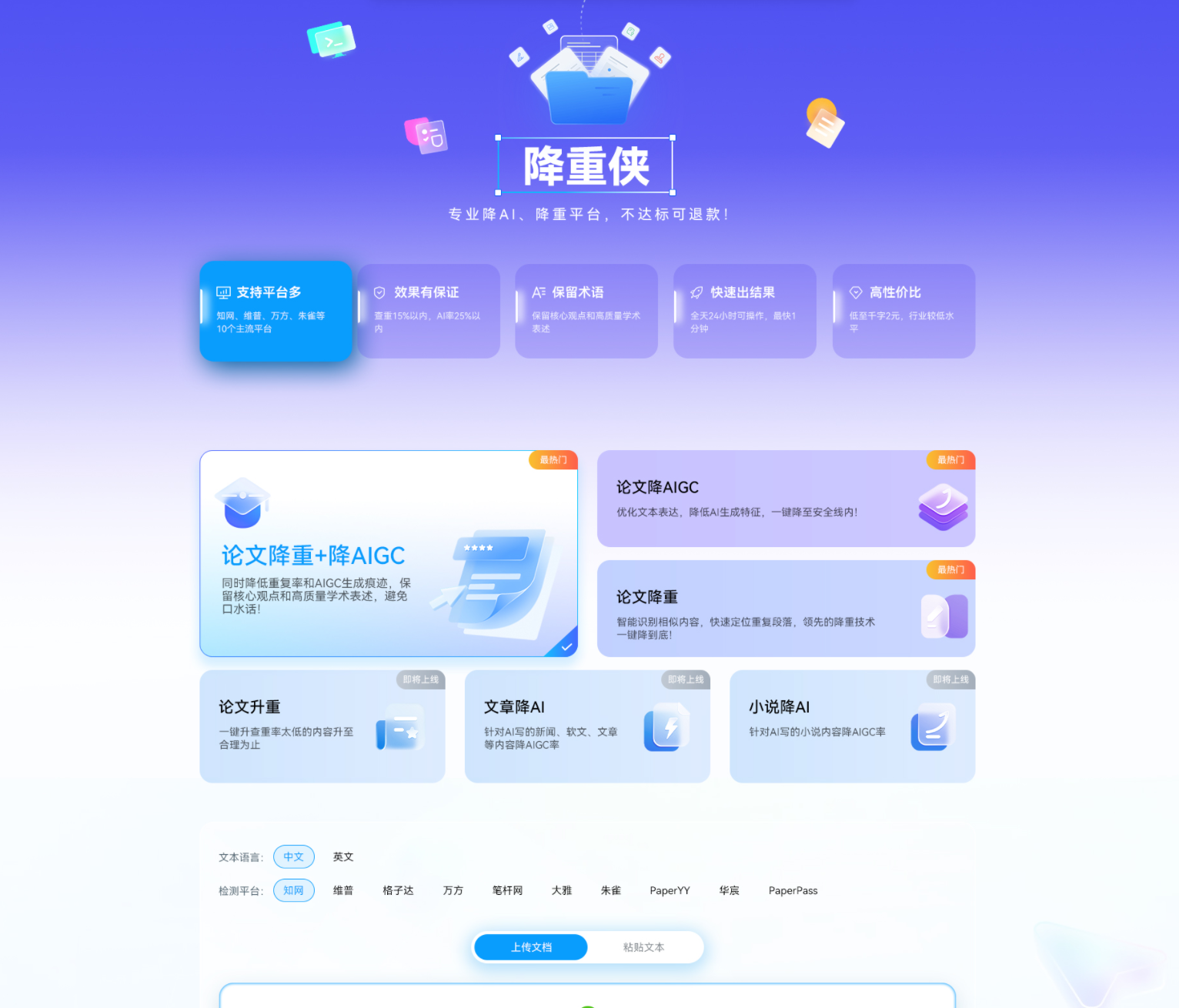 二、全能选手:降重侠AI(全场景适配)