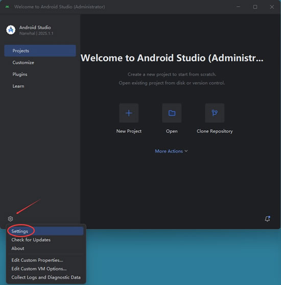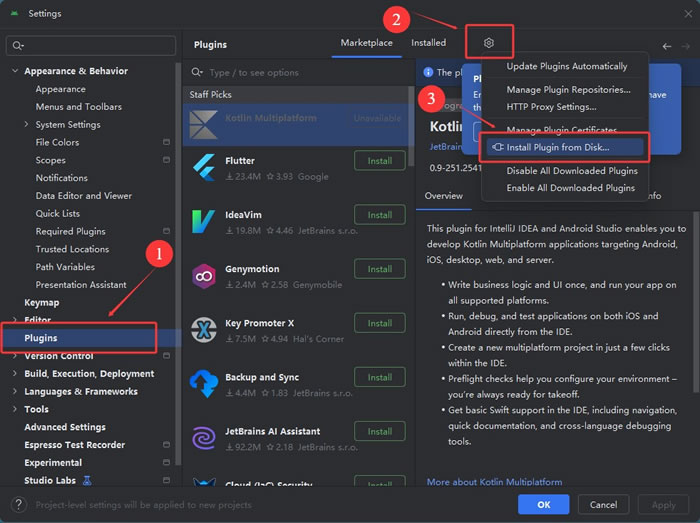 2) 点击“Plugins“,点击设置图标,点击“Install...“: