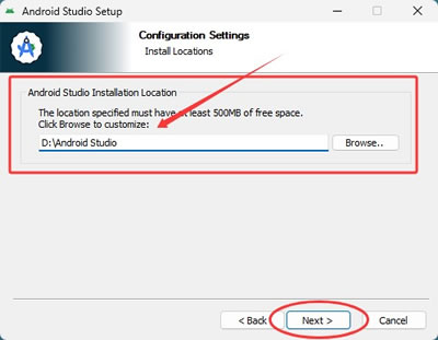 5) 手动修改默认的安装路径,建议安装到除 C 盘之外的其他盘,比如下图中的 D 盘: