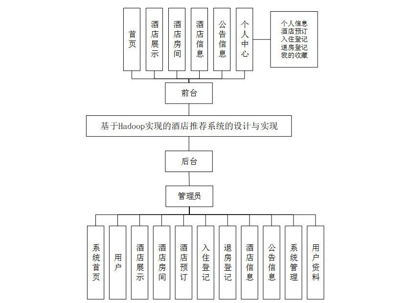 制作设计系统的初步核心。如下图所示:就是系统的功能设计是整个架构的运行基础,是一个把设计需求替换成以计算机系统的形式表示出来。通过对酒店推荐架构的调查、分析和研究,得出了该系统的总体规划,这