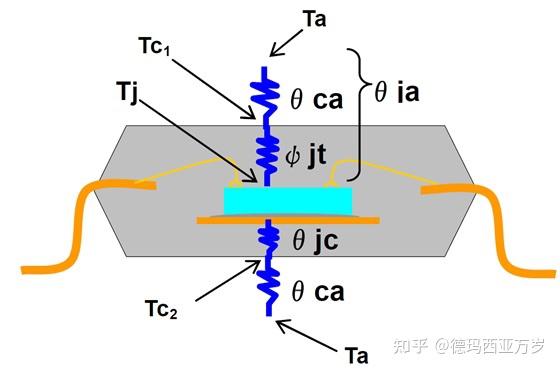 在阅读半导体器件的Datasheet时,我们经常可以看到很多温度值,结温度,外壳温度,环境温度等等。本人在网上查阅了一些相关资料,在此做简要说明。一份典型的关于半导体温度相关参数的说明如下图所示。