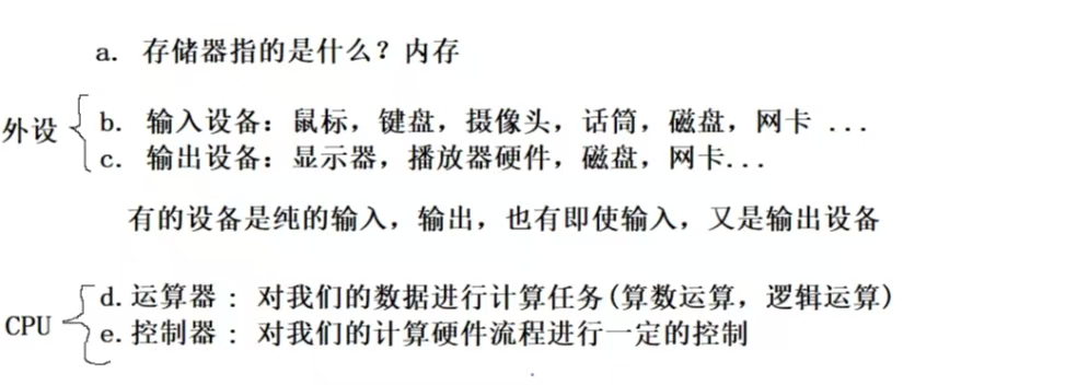3.外设(输入或输出设备)要输入或者输出数据,也只能写入内存或者从内存中读取。