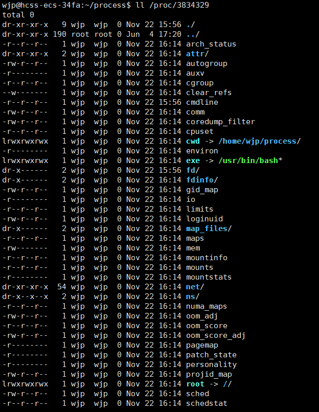 通过/proc/PID 我们就能够查看到进程的详细信息。